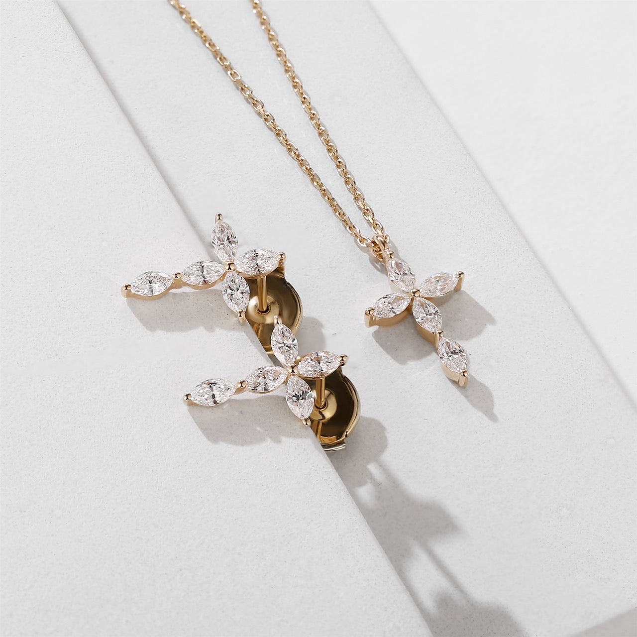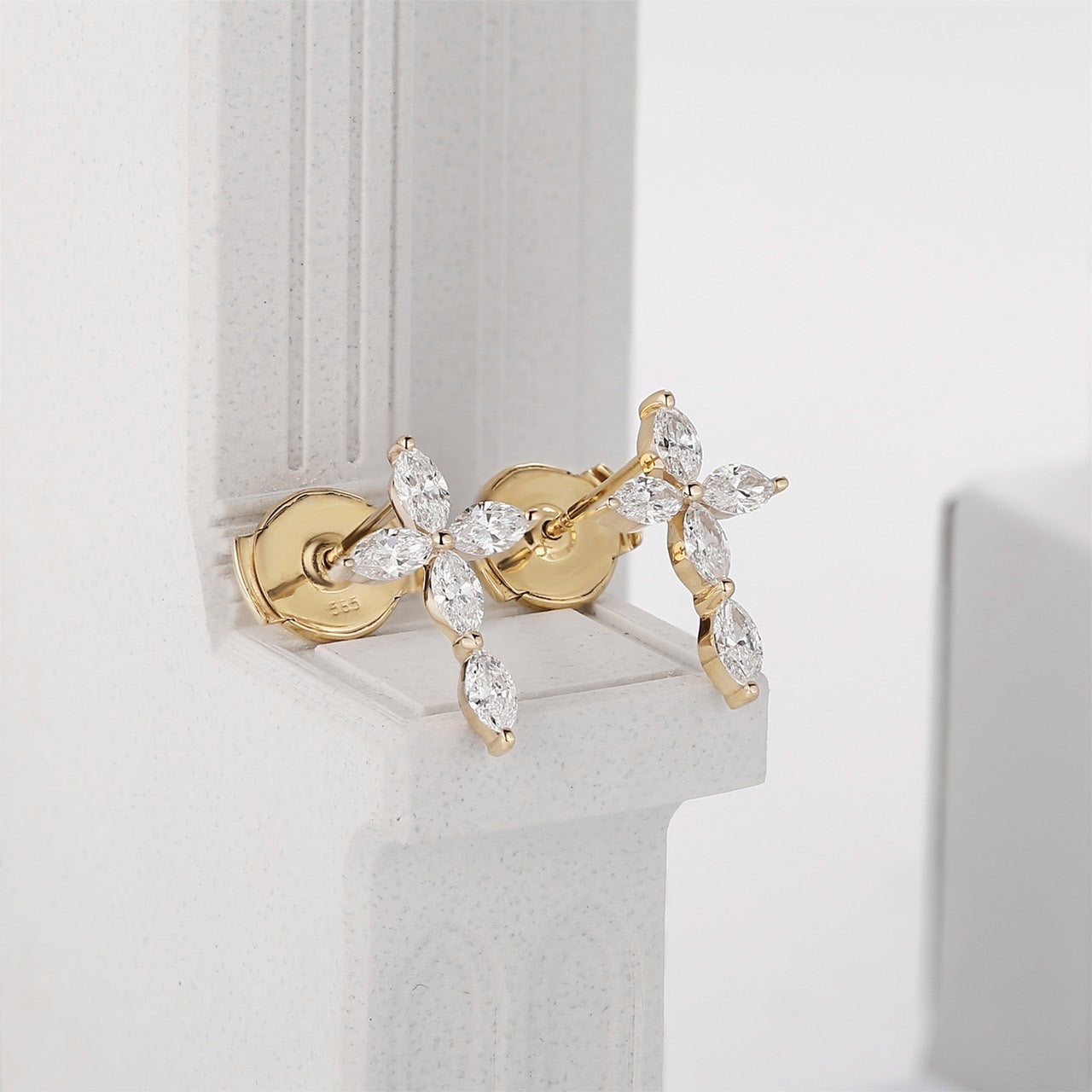 Mavie クロス イヤリング。Marquise カットを贅沢に使い、身につける人の優美さと自信を引き立ててくれるアイテムになればと想いを込めてデザインされています。